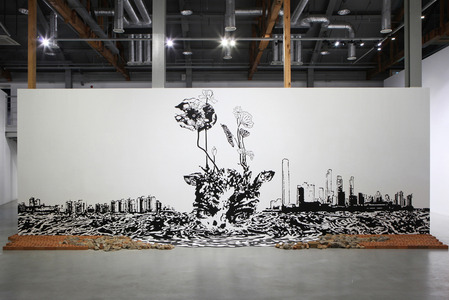 Deer Man - Staring at us out of the sea, 2010 Installation view acrlylic paint, brick